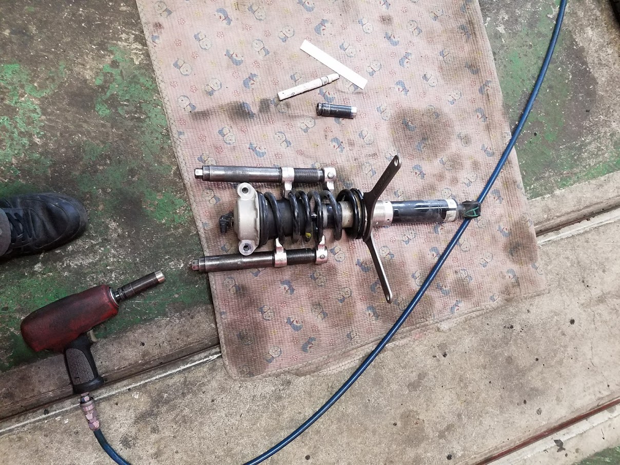 スプリングシートが一緒に回り破れる可能性がありますのでショックを取り外し後の調整です。